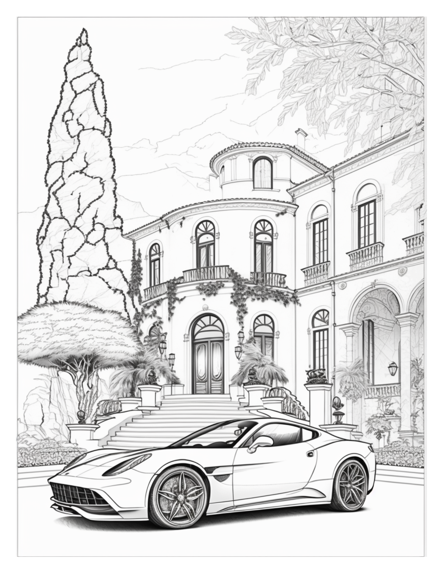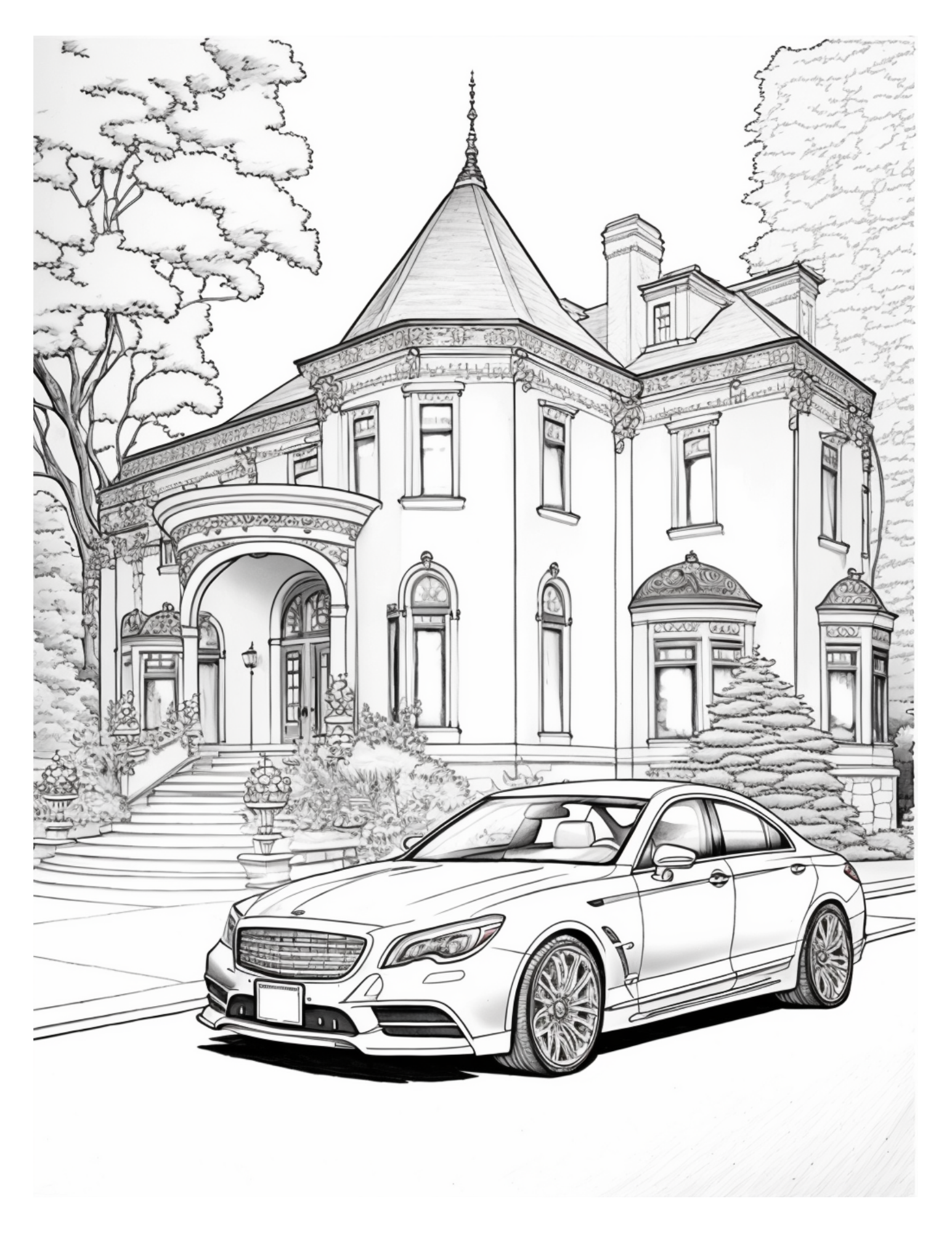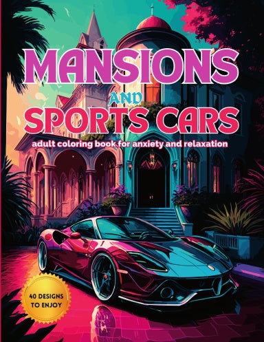 Dive into a sumptuous realm of riches and adrenaline-pumping fun with "Mansions and Sports Cars", the perfect adult coloring book for stress relief. Soak up lavish mansion designs and sleek sports cars, explore your creativity, and feel your worries melt away. If you're a car lover, architecture buff, or just need a breather from the hustle and bustle of everyday life, this colorful book is your peaceful escape. Get your colored pencils ready & jump into luxury & excitement with "Mansions and Sports Cars"!
